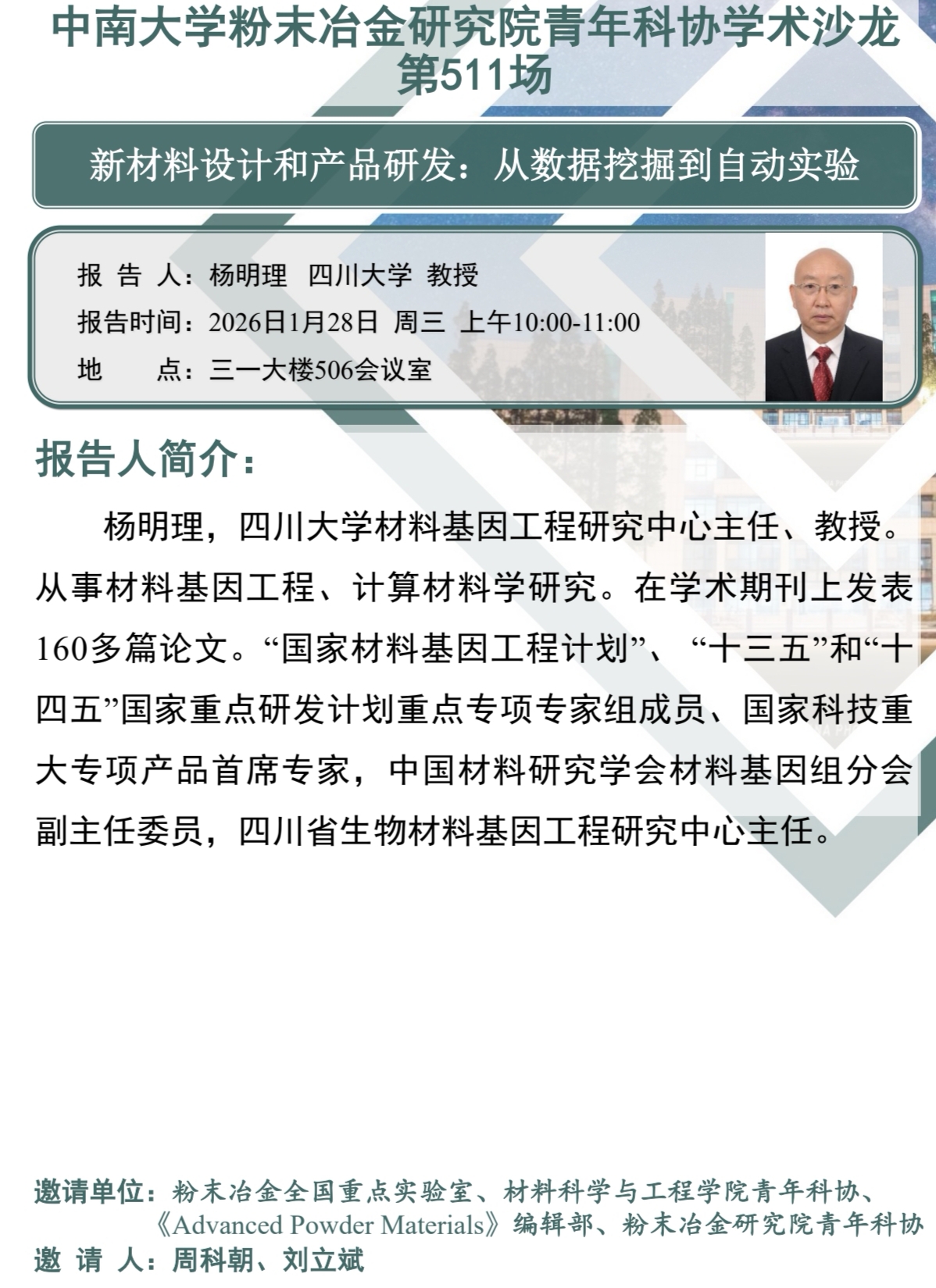 青年科协沙龙(第511场):新材料设计和产品研发:从数据挖掘到自动实验