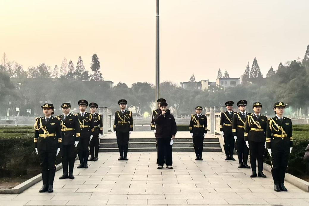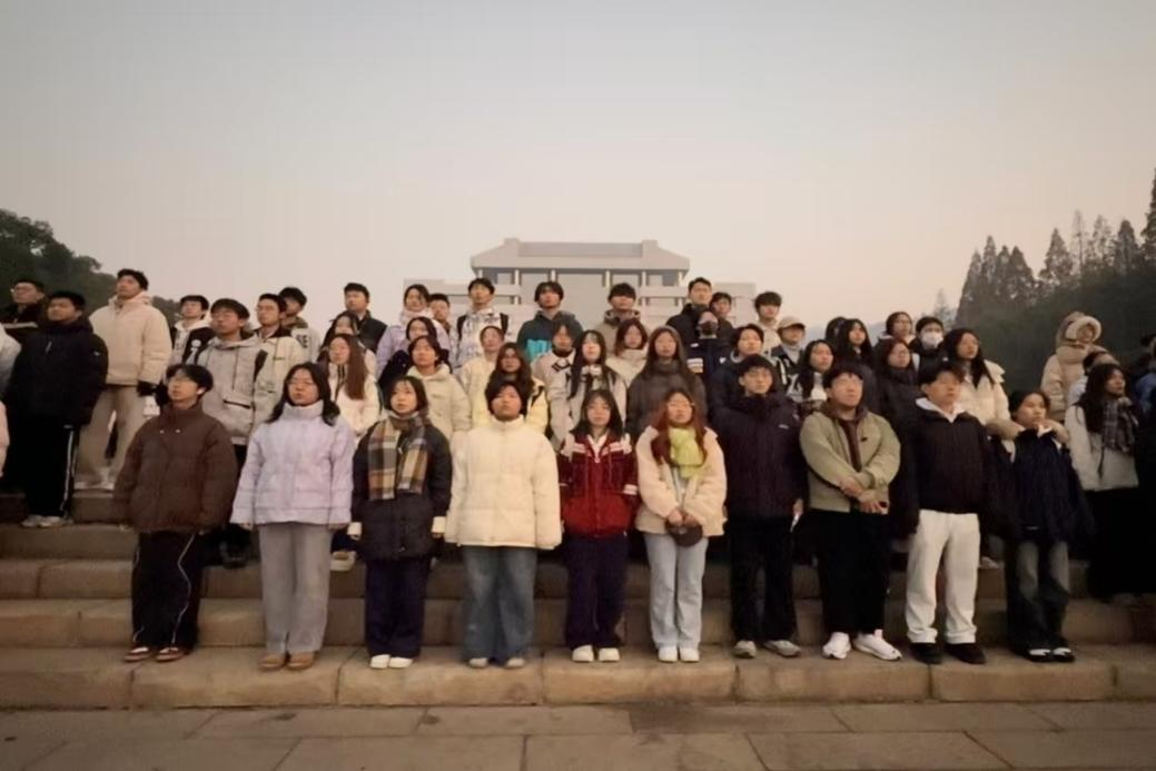 分团在岳麓山校区升旗台前参加升旗仪式,以饱满的青春热情唱响国歌。